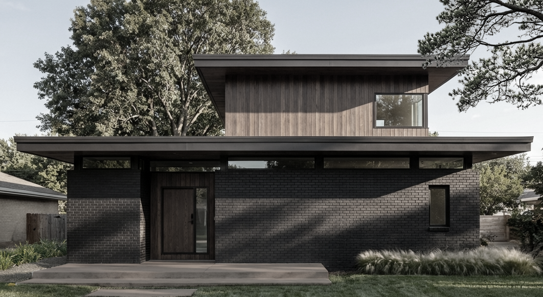 The exterior palette of brick, wood, and glass gives the home a grounded, timeless presence. Inside, a warm and tactile material palette softens the architecture and creates calm, layered interiors. Finishes of white oak, walnut, travertine, and soapstone can be found throughout the home.